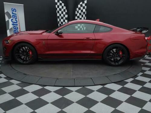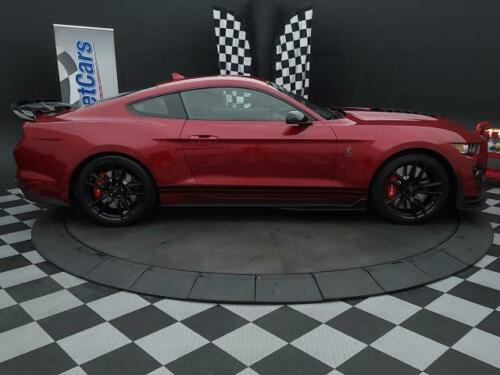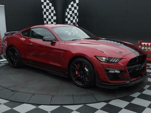 Locally-owned, Clean Accident-free CarFax-Ebony Leather w/Miko Gray Interior-Technology Package-Handling Package-Exposed Carbon Fiber Instrument Panel-Shelby Exclusive Trim Pack-Track Apps-Magneride Damping System-6-way Heated & Cooled Front Seats-Vinyl Over-the-Top Racing Stripes-Vinyl Side Stripes-Brembo Brake Calipers-SYNC3 w/8’’ Touchscreen Navigation-Rear View Camera-Remote Start System-Remainder of Factory Warranty!This 2020 Ford Mustang Shelby GT500 is the 760-hp American muscle car you’ve been looking for! This specific GT500 comes with a great list of standard and optional and features, including: 2.65L Eaton Supercharger, Magnesium Tower-to-Tower Brace, Technology Package ( BLIS w/Cross-Traffic Alert, Voice-activated Touchscreen Navigation, B&O Sound System w/12-speakers, and Subwoofer, HD Radio Technology, Driver's-seat memory, Heated side-view Mirrors, Cobra Projection Lamps) Handling Package (Gurney Flaps and Splitter Wickers) Larger Front Radiator Block-off Plate, Leather/Alcantara Wrapped Steering Wheel-Remote Keyless Entry, Engine Oil Cooler, Garage Door Opener, and much more! With under 1,000 miles on the clock, this Shelby Mustang shows in excellent condition both inside and out. The GT500 will come complete with two Master keys, original Owner's Manuals and a clean, Accident-free CarFax which can be viewed for free via our website. You can drive with the peace-of-mind knowing there's the remainder of the 3-year/36,000-mile Bumper-to-Bumper Warranty and the 5-Year/60,000-mile Powertrain Warranty!As a member of the SweetCars inventory, this GT500 has received a thorough inspection by our experienced technicians as well as a meticulous detail by our award-winning Detailing Staff. Treat yourself to the luxury you've always deserved, contact a SweetCars representative now to park this beautiful Ford Mustang Shelby GT500 in your garage today!