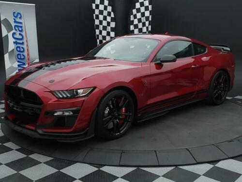 Locally-owned, Clean Accident-free CarFax-Ebony Leather w/Miko Gray Interior-Technology Package-Handling Package-Exposed Carbon Fiber Instrument Panel-Shelby Exclusive Trim Pack-Track Apps-Magneride Damping System-6-way Heated & Cooled Front Seats-Vinyl Over-the-Top Racing Stripes-Vinyl Side Stripes-Brembo Brake Calipers-SYNC3 w/8’’ Touchscreen Navigation-Rear View Camera-Remote Start System-Remainder of Factory Warranty!This 2020 Ford Mustang Shelby GT500 is the 760-hp American muscle car you’ve been looking for! This specific GT500 comes with a great list of standard and optional and features, including: 2.65L Eaton Supercharger, Magnesium Tower-to-Tower Brace, Technology Package ( BLIS w/Cross-Traffic Alert, Voice-activated Touchscreen Navigation, B&O Sound System w/12-speakers, and Subwoofer, HD Radio Technology, Driver's-seat memory, Heated side-view Mirrors, Cobra Projection Lamps) Handling Package (Gurney Flaps and Splitter Wickers) Larger Front Radiator Block-off Plate, Leather/Alcantara Wrapped Steering Wheel-Remote Keyless Entry, Engine Oil Cooler, Garage Door Opener, and much more! With under 1,000 miles on the clock, this Shelby Mustang shows in excellent condition both inside and out. The GT500 will come complete with two Master keys, original Owner's Manuals and a clean, Accident-free CarFax which can be viewed for free via our website. You can drive with the peace-of-mind knowing there's the remainder of the 3-year/36,000-mile Bumper-to-Bumper Warranty and the 5-Year/60,000-mile Powertrain Warranty!As a member of the SweetCars inventory, this GT500 has received a thorough inspection by our experienced technicians as well as a meticulous detail by our award-winning Detailing Staff. Treat yourself to the luxury you've always deserved, contact a SweetCars representative now to park this beautiful Ford Mustang Shelby GT500 in your garage today!