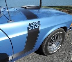 Genuine fully restored 1970 Mustang Boss 302 original G code with Marti Report. Original invoice, window sticker, factory buck tag. 91,000 miles. Show quality Medium blue metallic with complete new black interior. Correct rebuilt DOZE-B motor with all correct rare BOSS parts carby, distributor, all smog gear, factory shaker and snorkel, heat shield, Carter fuel pump, rev limiter, alternator, AM radio, power steering pump all rebuilt and reco'd etc. 4 speed close ratio top loader Hurst shifter, new clutch 3.9:1 nodular trac lok diff. Complete new Boss exhaust system and many new and NOS parts used in restoration. Genuine original Boss 302s are super hard to find in this pristine condition. Restored 2012 with full history with all documented resto file.