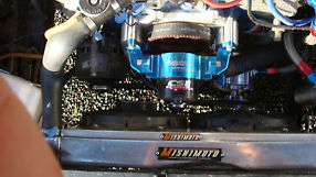 Twin fans on radiator. Electric fan on trans cooler. Tubular k member with adjustable qa1 struts, drilled and slotted rotors on all four corners, billet servo race c4 with trans brake sfi bell housing. 1050 dominator, braided lines and aerospace regulator. 3.5 custom exhaust with x pipe, msd distributor, autometer gauges and taco and much more.