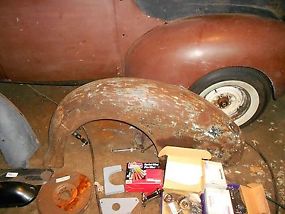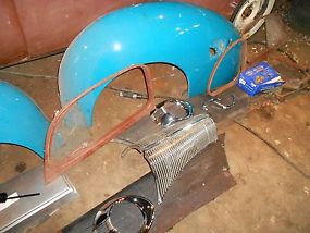 set of rear fenders that are widened fiberglass jobs. Have hood and running boards. Front fenders have been cut in the bumper slot area, most likely for