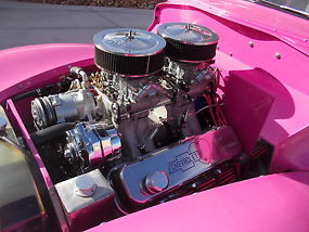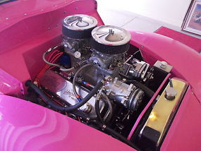 427 chevy, TCI auto trans, with 3000 stall converter. Deep sump trans pan with trans cooler. Weiand tunnel tam, dual quad.