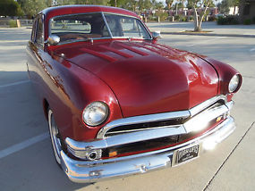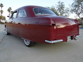 Up for sale is this 1951 Ford Two Door CUSTOM this was built some time back I did not build this car but I have been halfing a lot of fun driving it. It is a true old school hot rod. It has about all you can put on a hot rod back in the day of Buddy Holly and the Crickets First its been lower V8 added 350Chevy floor shifter automatic transmission tran. cooler big aluminum radiator front G/M clip car has new wiring 12 volt batt. in the trunk see photo power disc brakes power steering elect. cooling fan air conditioning(works) all the new dash gauges work the Org. speed O and miles are working inside dome lights(one on each side works) head lights turn and tail light all work French head and tail lights nosed front and decked rear removed door handel smooth sides split rear bumper custom grille remote key put in gas thank outside fill door Tinted power windows tilt steering column and custom steering wheel fender skirts has dual exhaust I lost one of the tail pipe tips( will get a new one ) THE CAR DRIVES AND RIDES JUST GREAT the car needs to be gone over on the outside the two dents I show in the photo are not to bad but at the car show every one looks at them and ask me how it happen ?? I bought it this way this is a true ten footer as you see in the photos it looks great but at shows they pick on it no rust to deal with just age I drive it this way and have fun with it IT DRIVES GREAT all day down the Ca freeways in the photos I show you the IOWA title look close you will see it was prior salvage title . this car was stolen in Ca. and then recovered in a Ca chop shop they had taken off the front of the car ready to sale the parts when they got caught the Ins. had paid off the owner then sold it to the man in Iowa he is the one who put it back together and got it Insp.in Iowa and got the clean Iowa Title now the car is back in Ca. and is being sold by me THIS IS A NO RESERVE AUCTION if you bid you may own it so pleas bid to buy. this is a good buy put some work on the body and you will have a 25 to 30,000.00 car the car is for sale in town so I might need to close this auction early OR you can call me with your best offer 760-275-7746 Mac payment is by cash or bank wire shipping is on the new buyer I can help Thanks For Looking