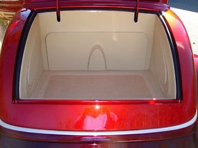 ROSS JOHNS OF CHAMPAIGN, ILL. FABRICATED THE SPECTACULAR CUSTOM INTERIORIN ALL IVORY LEATHER WITH WICKER INSERTS. A MANUAL DOOR RELEASE CABLE,BATTERY KILL SWITCH & REMOTE BATTERY TERMINALS ARE THERE IF YOUNEED THEM.