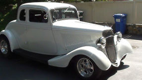 1934 Ford coupe . Street Rod with all original steel body. Car has ford 302 EFI. power disc brakes, A/C serpentine belt set up. Body is pearl white with some chips & Scratches. It has minor damage below the front grill.