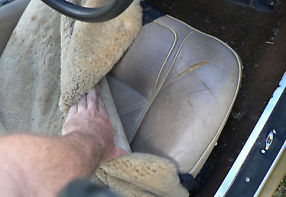 Interior looks to be in original condition and has normal wear and tear for age and cloth seats are covered with professionally fitted sheep skin covers.