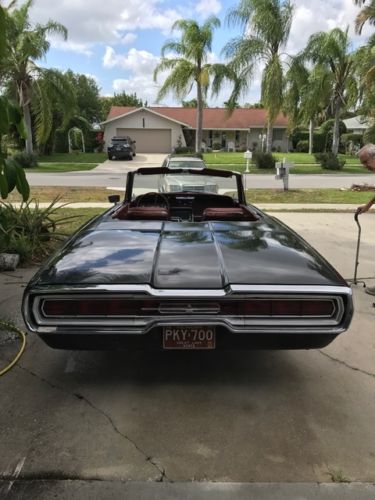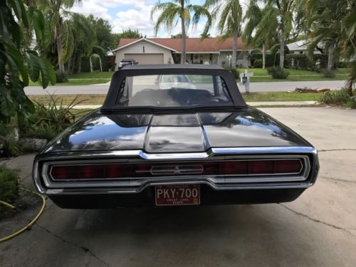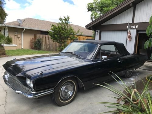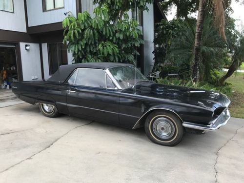 1966 Ford Thunderbird Convertible. One owner car with original black paint, original bronze interior, and black top. Top was replaced several years ago and is in great condition. Other options include: power windows, power convertible top, power steering, power disc brakes, swing steering wheel, AM radio, automatic transmission, original V8 engine, and sequential taillights. Some cosmetic work is needed to body as there is a dent in the passenger front fender and some light rust on bottom of the doors. Approximately 125k miles.