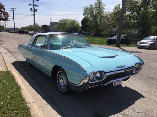 Amazing 1963 Ford Thunderbird.beautiful baby blue with white top (sparkles in the sun) Car runs great, just had tune up, new tires, new gas line, garage kept, smoke free house. Don't let the car seat covers fool you, the seats are perfect underneath. The car is ready for the road. ac doesn't work, radio doesn't work, only 69208 original miles, has a small oil leak. Buyer responsible for local pickup or transport. Payment must be made in full in 72 hours of auction end.