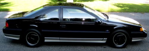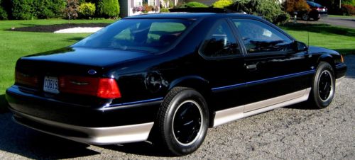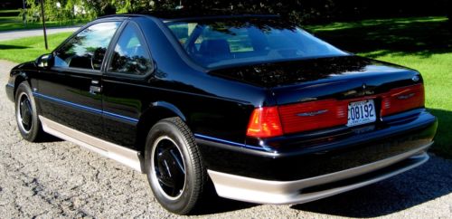 You are bidding on perhaps the best in existence climate controlled pristine showroom condition one owner 1990 Ford Thunderbird 35th Anniversary Super Coupe finished in stunning Black with Blue Accents Exterior with pristine special Black Leather interior all its original quality details and appointments abound in this magnificent Limited Edition Thunderbird. One of only 3,371 ever built by Ford. For the most discerning collector in perfect original condition thru-out. It has covered only 1,411 carefully driven miles since new which shows in the amazing time warped Survivor condition. This Super Coupe has lived life in a sheltered UV protected Climate Temperature Controlled with AC and heat environment storage garage since day one. If you are a very fussy discriminating collector who demand originality & perfection then look no further your search is over. This is quite possibly the lowest mileage 1990 SC in existence in perfect condition it is listed in the 35th Anniversary Registry. 1st time ever offered since new an eBay exclusive private seller event.