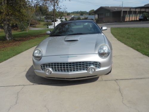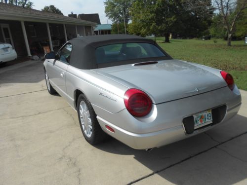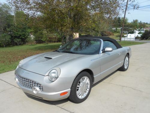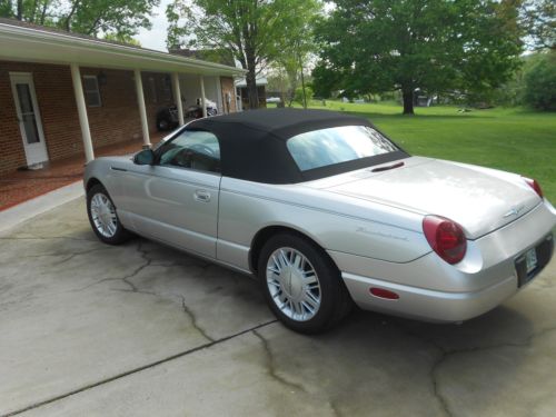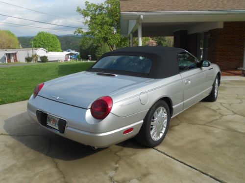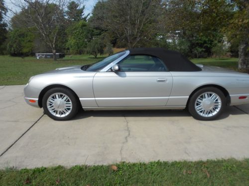 THISIS A BEAUTIFUL 50TH ANNIVERSARY THUNDERBIRD FINISHED IN PLATINUM SILVER WITHBLACK LEATHER TRIM AND BLACK SOFT TOP. I HAVE OWNED THS SUPER VEHICLE SINCE OCTOBER2011 – IT HAS BEEN A REAL PLEASURE TO OWN AND DRIVE. THIS IS A NON-SMOKERVEHICLE WITH OMLY MINIMAL SIGNS OF USE CONSIDERING IT IS 13 YEARS OLD AND ITHAS NOT BEEN A GARAGE QUEEN. THIS CAR HAS BEEN GARAGE KEPT, METICULOUSLYSERVICED AND MAINTAINED, AND – AT LEAST DURING MY OWNERSHIP – NEVER DRIVENDURING WINTER INCLIMENT WEATHER. ITHAS ALL THE STANDARD OPTIONS INCLUDING HOMELINK UNIVERSAL GARAGE DOOROPENER, 5-SPEED AUTOMATIC TRANSMISSION WITH MANUAL SHIFT OPTION, HEATEDSEATS, AND MUCH, MUCH MORE!