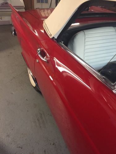 1957 True Ebird. Original 312 engine manual. 8 year old paint with very small flaws. Chrome is great all around. Top looks new, new wheels, tires, exhaust, brakes, and shocks. It is a driver and has been driven in parades and car shows. Took it in on trade for property and previous owner had it for 25 years. I have the original 2x4 carbs and steering wheel. Representing to the best of my knowledge. Car has been appraised and selling below appraisal. Will be sold as is no returns or warranty. Car is beautiful inside and out. Runs excellent! No reserve.