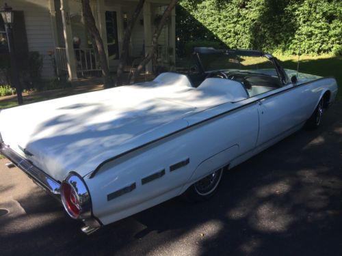 1962 Ford Thunderbird Convertible (soft top.) Disc brakes, power brakes, power steering, new carpet in passenger compartment and truck, new side trim, newer tires, halogen head lights and tail lights, new radio (made to look like the original), tonneau cover for rear seat, holley four barrell carburetor, new battery, garage kept, wire wires. Not the original owner.
