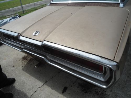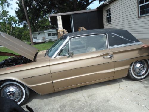1966 ford t-bird gold with black vinyl top 2dr coup white interior engine is not running seized low mileage 30,868 rwd auto transmission engine 390 v8 has rust will need restoration. one new tire in rear other 3 tires will need to be replaced. sold as is.