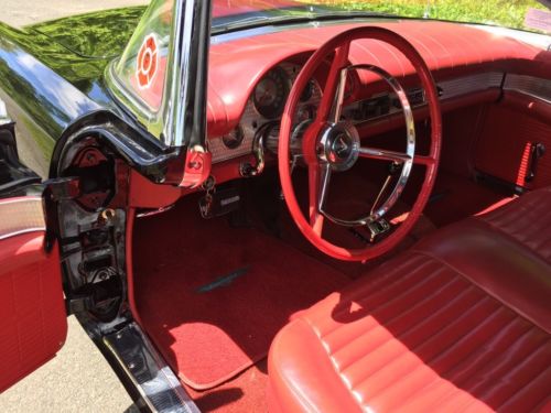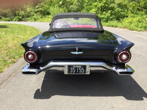 A beautiful 57 Tbird with power steering, power brakes, both tops and factory memory seat. The car has new tires and brakes. The car was professionally stripped and painted black base coat clear coat.The car has no rust and has all new exterior chrome, and the bumpers were also rechromed.