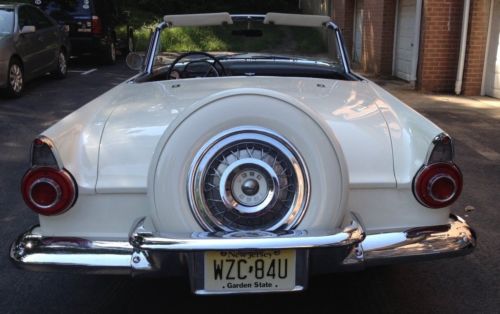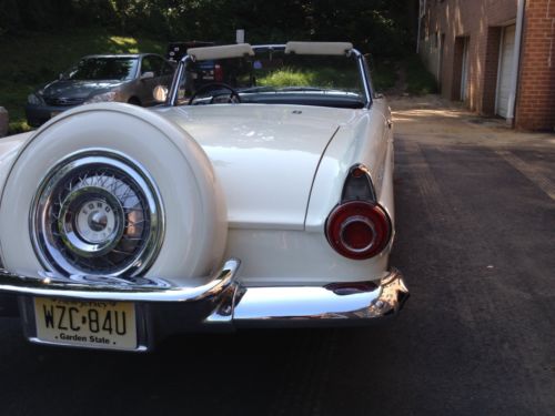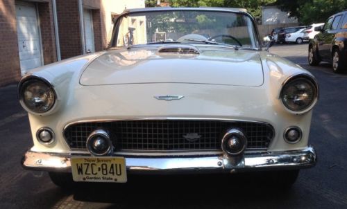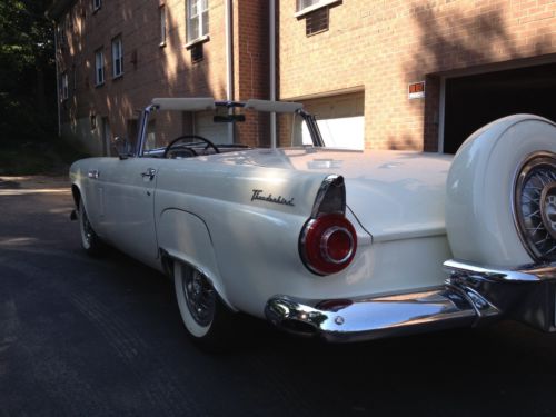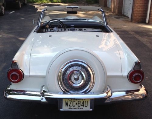 Beautiful 1956 T-bird for sale with separate hardtop. Straight body, not rust no bondo. Floors are solid. always garaged. Was professionally painted 10 years ago. Paint looks really good. Engine was rebuilt 10 years ago too and car runs and shifts great. Has a small oil leak under the engine, most likely the typical T-bird rear seal. Chrome is in good state except driver side rear bumper part which needs re-chroming, see picture. Driver side door window needs new glass since it has a crack, see picture. Fire wall vin number decal is missing. Have clean title though. Power steering.