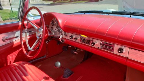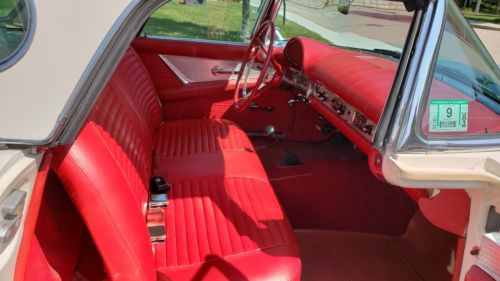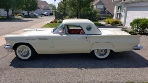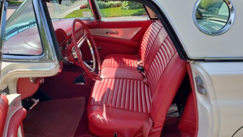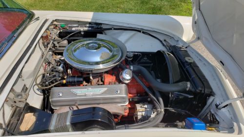 -Colonial White with port hole in the removable hardtop. Red interior. Not original paint but original color.