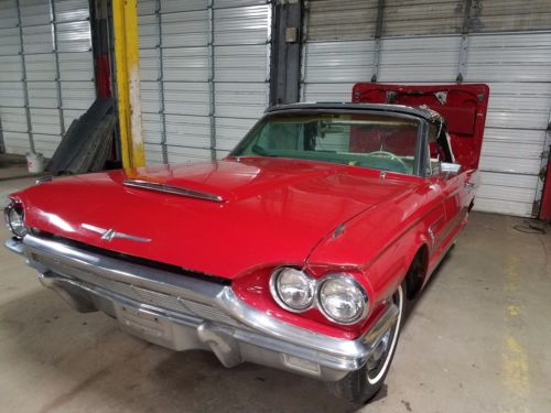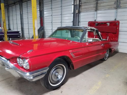 1965 Ford Thunderbird convertible. Very nice original West coast car. Comes with a rebuilt 390c.i and automatic transmission Fully loaded car with power windows, seats, and top. This car had a paint job a few years ago and as you can see the restoration process was well under way. The interior is in nice condition. The floors are very solid. Carpet was removed to show dryness of car. The convertible top does work as well as most of the electrical components of the car. The engine and transmission will be installed into the vehicle for shipping purposes. This car has had a lot of the hard work already done just needs minor finishing touches and assembly to be a great car. As you can see this is a restoration project but comes with all the trim and accessories needed to finish. IF YOU HAVE ANY QUESTIONS PLEASE GIVE ME A CALL 9016520106