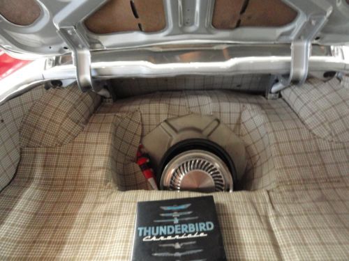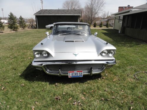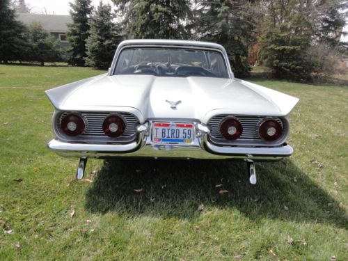 1959 FORD THUNDERBIRD WITH POWER STEERING, POWER BRAKES,AND POWER WINDOWS AND IS IN IMMACULATE SHAPE.I PURCHASED THE CAR 11 YEARS AGO AT AN ESTATE AUCTION OF THE DECEASED WHO TOOK IT OUT ON SUNDAYS IF THE WEATHER WAS GOOD.IN MY 11 YEARS OF OWNERSHIP I DROVE IT 1900 MILES ON SUNDAYS AND TO CAR SHOWS.IT HAS WON A PRIZE AT EVERY SHOW. USING THE HAGERTY GUIDE IT IS NOT QUITE A 1 BUT IS A VERY STRONG 2. THE ONLY REPAIRS MADE TO IT BESIDES OIL CHANGES AT MY FORD DEALER WERE REPLACEING THE FENDER MIRRORS WITCH WERE A LITTLE PITED THE POWER WINDOW CONTROL AND THE GAS GUAGE SENSER WHEN IT APPEARED TO BE A LITTLE OFF.THE CAR RUNS BEAUTIFULY AND THE ENGIN IS EXCELLENT AND VERY CLEAN.I DONT THINK YOU COULD FIND A BETTER ONE ANYWHERE.MY REASON FOR SELLING IS IM RUNNING OUT OF GARAGE SPACE AND ONE OF MY CARS HAS TO GO.