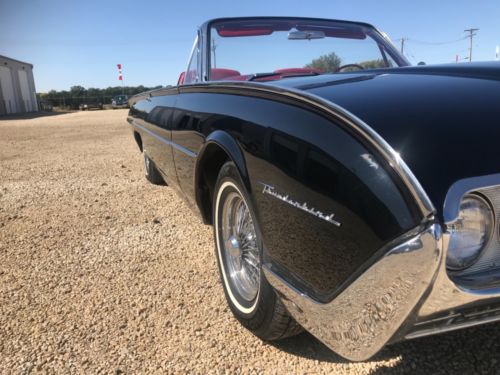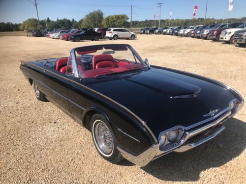 1962 Ford Thunderbird Roadster Number Match 390 Big Block Balanced & Blueprinted Automatic. Restored factory Raven Black Beauty with Red leather interior. Power windows, Power top and sliding steering wheel. Extremely rare find. Low production numbers on this classic. Rust free undercarriage. All windows go up and down as they should. All gauges work. Chrome is good original. Paint is real good 9/10. Interior is super clean with no defects or rips. Overall car is pristine. Ready for show and shines or cruise night. Amazing car to drive. Truly a must see!! We have a full video of the car also showing the top functioning up and down. Everything works perfect. No expense spared build. Text 204 750 2910 for video. Car is located in Winnipeg Manitoba Canada. We encourage anyone in the area to come take a look as the pictures don't do this classic justice. We can assist in helping to arrange shipping to the united states. We can also physically import the car into the states as we are only 45 minutes to the US Border. This will drastically cut down on shipping quotes. Call 204 831 7040 for more info to buy. We also have the car for sale locally so we reserve the right to end the auction early!!