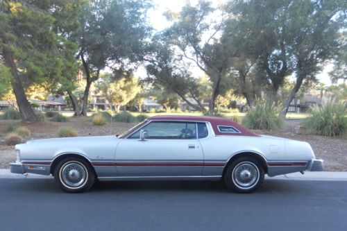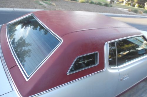 WE ARE PLEASED TO PRESENT FOR YOUR KIND CONSIDERATION AN EXTREMELY WELL KEPT LAST YEAR EXAMPLE FROM THE SIXTH GENERATION OF TBIRD PRODUCTION. THE RARE SILVER BIG BIRD EXTERIOR IS COMPLIMENTED WITH BURGUNDY VINYL TOP, COLOR MATCHED SIDE BODY MOLDINGS, AND SUMPTUOUS BURGUNDY SPLIT BENCH INTERIOR FEATURING IMMACULATE HEADLINER, DOOR PANELS, DASH AND CARPETING. ONE BUTTON IS MISSING ON DRIVER SEAT. FACTORY AMENITIES INCLUDE TILT STEERING WHEEL, AIR CONDITIONING, AM/FM 8-TRACK STEREO, POWER WINDOWS AND POWER DOOR LOCKS.