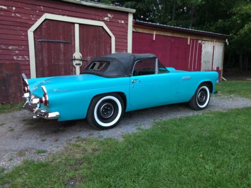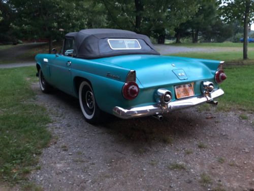 1956 thunderbird, old hot rod, last titled 1978 New Jersey, has "312 merc, 4 spd, dual glass packs, runs good, drives stops, charges, "57 mercury steering wheel, black tuck and roll seat, needs..wipers, power windows, turn signals, gas gauge repaired, . hasheadlights, tail lights, brake lights