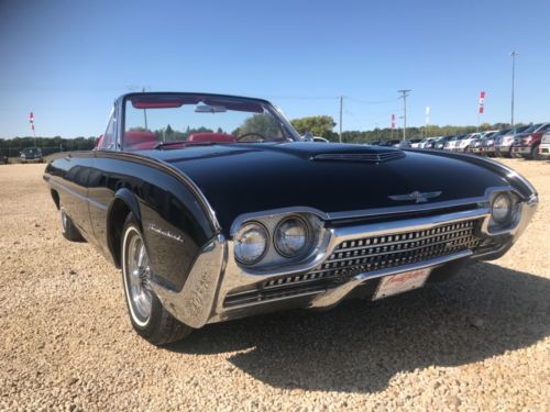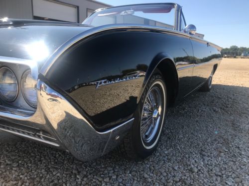 1962 Ford Thunderbird Convertible Number Match 390 Big Block Balanced & Blueprinted Automatic. Restored factory Raven Black Beauty with Red leather interior. Power windows, Power top and sliding steering wheel. Extremely rare find. Low production numbers on this classic. Rust free undercarriage. All windows go up and down as they should. All gauges work. Chrome is good original. Paint is real good 9/10. Interior is super clean with no defects or rips. Overall car is pristine. Ready for show and shines or cruise night. Amazing car to drive. Truly a must see!! We have a full video of the car also showing the top functioning up and down. Everything works perfect. No expense spared build. Text 204 750 2910 for video. Car is located in Winnipeg Manitoba Canada. We encourage anyone in the area to come take a look as the pictures don't do this classic justice. We can assist in helping to arrange shipping to the united states. We can also physically import the car into the states as we are only 45 minutes to the US Border. This will drastically cut down on shipping quotes. Call 204 831 7040 for more info to buy. We also have the car for sale locally so we reserve the right to end the auction early!!
