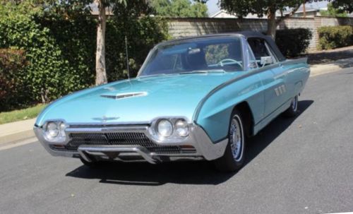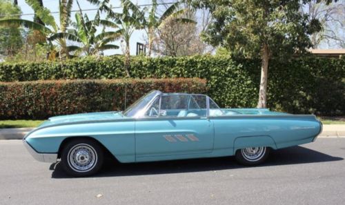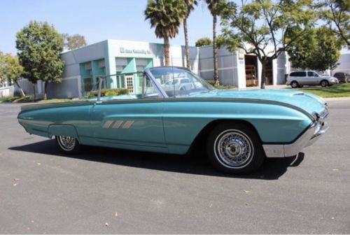 Up for sale is one of the limited number of Ford Thunderbird convertibles manufactured in 1963. It is finished in a beautiful blue turquoise color with a matching interior. This is car shows its low, original mileage at 67,400 on the odometer. Powered by a dependable 390 CI V-8 engine and automatic transmission, this car has been in California its entire life. It has power steering, power brakes, power brakes, power windows, dual exhaust, new Kelsey Hayes wire spoke wheels and new tires. It is a great riding, dependable weekend cruiser. All glass and chrome are in great condition. The power top is new but is in need of a repair at present. It has been finished lighter turquoise blue exterior with complementing interior. A very fun driving car that gets compliments from people every time you drive it.Please ask all questions before bidding. Buyer is responsible for vehicle pick up or shipping from Los Angeles area, California, United States. A deposit of US $500 is required within 48 hours of auction close. Full payment is required within seven (7) days of auction close.
