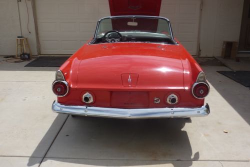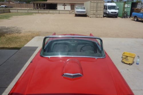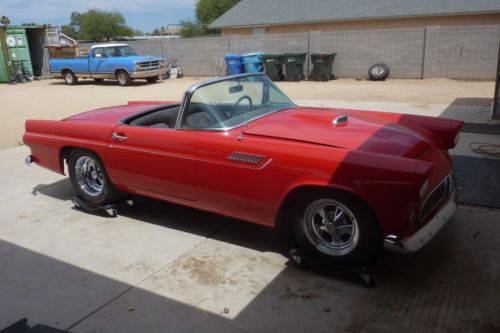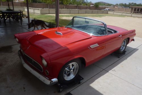1955 t-bird " PROJECT CAR'' car runs car drives ,took out old junkie bucket found Very Nice stock seat,[seat is not bolted in] ,engine is small block chevy 400 with powerglide car was a WANTABE dragcar . bought to drive to car shows in Phx, has 3;50 gears with a 9 '' ford rearend, ET slicks with New front tires with 0 miles on them. Front Disc Brakes.car needs exhaust welded to headers to street drive. can send photos of engine and trunk apon request, it has 5 gal fuel cell and batt in trunk but i have a stock tank that goes with it also..alumunim radiator, ele water pump, ele fuel pump . Car HAS the Stock Hardtop ONLY[no Ragtop] color of top matches car[Red]. the ONLY REASON i AM selling is i Dislocated Both shoulders and at my age they are not healing well,been a year at this rate maybe 1-2 more .car is in my garage with AC and Heat ..Not outside , again i have called this a PROJECT as to NOT miss lead anyone needs minor work , feel free to call i am willing to answer any and all questions, My loos your Gain [ or have Garage Squad come fix it then i would keep it and drive it lol [or OVERHAULING} BIG LOL 602-505-0190 can help shipper load buyer responsible for shipping costs. car will be for sale local i reserve the right to cancel auction at any time