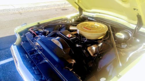 Because the interior and exterior look like they are ready to show off, the engine bay is quite tidy, too. The golden valve covers, matching air topper. But more than just look terrific, you'll love that this freshness is due to an engine rebuild that took place only a few years ago. And if that sounds like a great recipe for a dependable cruising classic, then you'll also be happy to know the three-speed automatic transmission. The V8 inhales deeply from the four-barrel carburetor, and it exhales with calmed confidence out of the dual exhaust. As you look at the undercarriage photos, you're going to see more clean components that remind you all the right investments were made, including new tires, power steering and front disc brakes keep this T-bird cruising confidently.