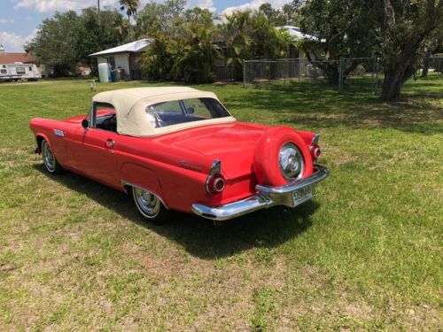 PROBLEM FREE, RUNNING, DRIVING CAR. THIS CAR WAS A SPECIAL ORDER, SHIPPED TO BOSTON IN 1956 WITH THE BODY COLOR BEING SUNSET CORAL. THE CAR WAS MADE JUNE 25, 1956. IT CAME WITH A 3 SPEED MANUAL TRANSMISSION, POWER SEAT AND TWO TOPS. I PERSONALLY HAVE MADE IMPROVEMENTS WHICH INCLUDE A NEW FRONT END, CONSISTING OF BALL JOINTS, TIRE ROD ENDS, UPPER AND LOWER ARM BUSHINGS, SPRINGS, SHOCKS FRONT AND REAR, GREASE FITTINGS, NEW MOTOR MOUNTS, BRAKES, NEW PADS, DRUMS AND LINES, AND A REBUILD OF THE HOLLY 4000 CARBURETOR, COMPLETE TUNEUP, HIGH SPEED TIRE BALANCING AND ALIGNMENT, NEW UPDATED T&C RADIO AND NEW AFTER MARKET AIR CONDITIONING.I FORGOT TO MENTION THAT THE 3 SPEED MANUAL