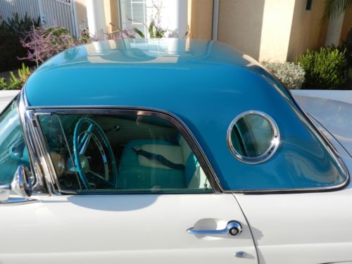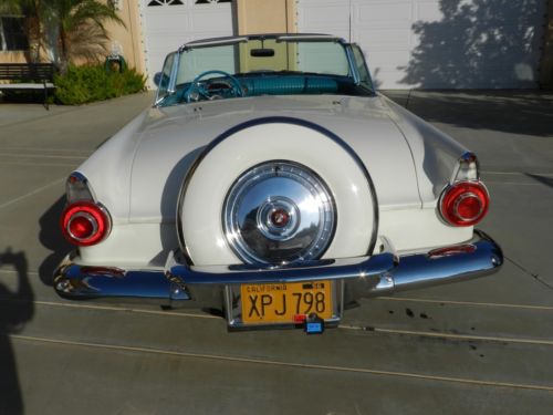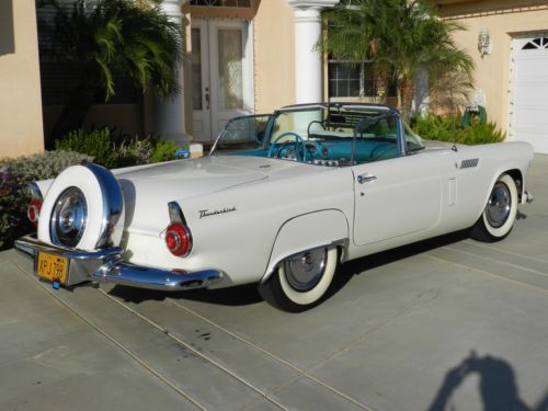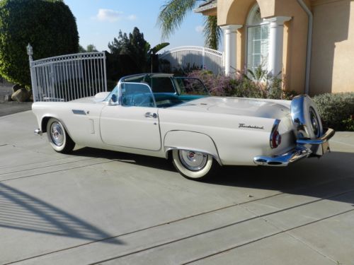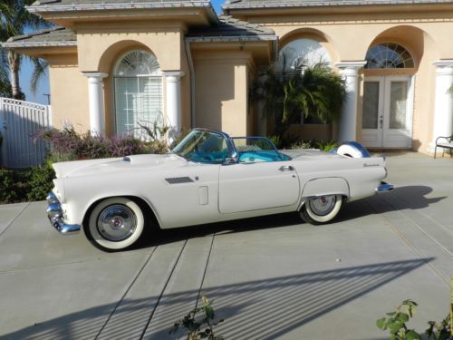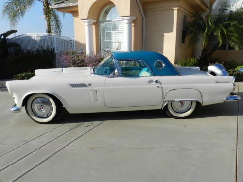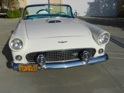 This Thunderbird was completely restored in 2000 including entire driveline. Everything on this car is new, Interior and exterior colors are the factory original. Triple coat dupont paint that has a brilliant shine. Chrome and stainless are perfect. Car comes with its original jack, spare and 1956 original license plates. Overall this car is in excellent show room condition, A 9.5 out of 10. Everything works including dash and interior lights. Cruise control is after market installed by the original owner. Locking removable hard top. You will not be disappointed in any way with this car. I have all the ownership and restoration documentation. Clear California title with up to date registration. Please call and I can answer any questions. 951-776-3035. All inspections are welcome prior to bidding, no inspections after auction close.
