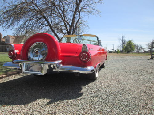While showing typical age-related paint and body flaws, the paint is bright and shiny and the flaws do not detract from the car’s over-all appearance. Chrome and trim quality is very good showing only minor scuffs. The glass throughout is in great condition.The removable port hole hardtop has nearly new weather stripping all around and a very nice fitting headliner. The gravel guard equipped fender skirts fit nicely and give the car its famous long, low sporty Thunderbird appearance. New 15” white wall tires provide a smooth performance. (Since the attached pictures were taken, the older wide white wall tires have been replaced with the new more narrow white walls.