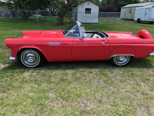 PROBLEM FREE, RUNNING, DRIVING CAR. THIS CAR WAS A SPECIAL ORDER, SHIPPED TO BOSTON IN 1956 WITH THE BODY COLOR BEING SUNSET CORAL. THE CAR WAS MADE JUNE 25, 1956. IT CAME WITH A 3 SPEED MANUAL TRANSMISSION, POWER SEAT AND TWO TOPS. I PERSONALLY HAVE MADE IMPROVEMENTS WHICH INCLUDE A NEW FRONT END, CONSISTING OF BALL JOINTS, TIRE ROD ENDS, UPPER AND LOWER ARM BUSHINGS, SPRINGS, SHOCKS FRONT AND REAR, GREASE FITTINGS, NEW MOTOR MOUNTS, BRAKES, NEW PADS, DRUMS AND LINES, AND A REBUILD OF THE HOLLY 4000 CARBURETOR, COMPLETE TUNEUP, HIGH SPEED TIRE BALANCING AND ALIGNMENT, NEW UPDATED T&C RADIO AND NEW AFTER MARKET AIR CONDITIONING.I FORGOT TO MENTION THAT THE 3 SPEED MANUAL