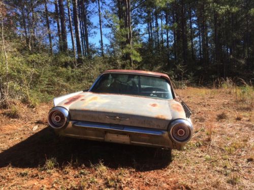 1963 Ford Thunderbird parts vehicle with 390 FE V8. Automatic transmission. All trim in very good shape. All glass is good. And some interior parts are useable.