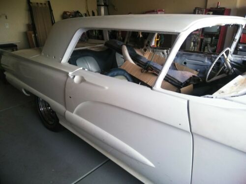 Do you want a solid rust free Nevada Thunderbird to get your creative juices flowing? here you go. 1960 Ford Thunderbird, originally a 352/CruiseOmatic car, no engine no transmission, entire brake system is rebuilt and functions properly, new wheel cylinders, lines, shoes, hardware kit, drums, master cylinder and brake booster was rebuilt. Gas tank was cleaned out and put back in with the stock sending unit. New tires and wheels no flat spots in them they are 2 years old as of now. No front glass, no back glass, side windows and quarter glass is good and in the trunk with all the interior trim, parts and pieces were taken off and labeled in ziplock bags and placed in ammo cans and boxes in the trunk. This is a solid Nevada western rust free car, 99% of all bodywork was done it was blocked out in primer and left alone, it is straight enough for black as it was going to be painted Tuxedo Black. It needs a scuff if you want to shoot color on it. There was no rust to begin with. What you see is what you get, no bumpers. All interior parts, dash, gauges in trunk and labeled with screws, nuts, bolts, hardware, etc. Needs carpet kit dash pad and seats redone with the door panels. Non AC car. Relatively low miles on it as well I believe it was around 98k.