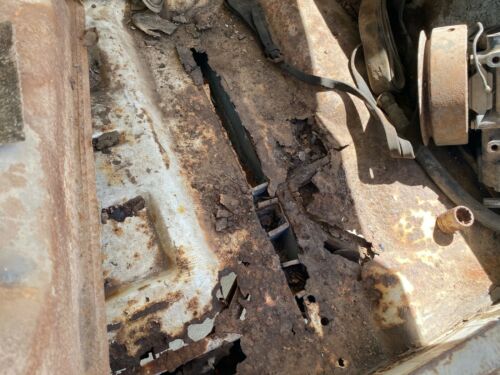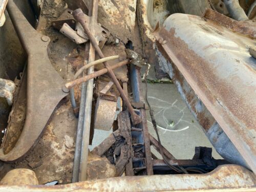 Needs a complete trunk floor, Front floor repair, rear floor patches, and it has some rust on the lower quarters and other areas as shown. Interior needs to be redone, and it needs a windshield.