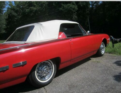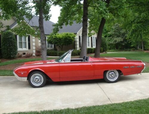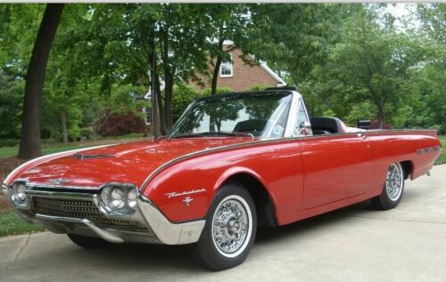 1962 factory Thunderbird Roadster, 25,966 act. mi. purchased from estate. It has the Ford 390 cu. in M-series engine with tri-power carbs, chrome dress up kit, new gas tank, M-series correct new exhaust, original black leather, factory seat belts, int. and ext. chrome trim excellent, dash, door panels and grab bar not cracked. New white top. Five orig. Kelsey Hayes spoked wheels. Top has new cylinders, top pump, hoses, and works flawlessly. Car has many original stickers/factory numbers. Factory A/C needs charging but fan works. All power windows work fine. Data plate carries the correct "76B" factory roadster identifier. Car repainted in correct Rangoon Red color. Clear NC title. Full documentation of vehicle. Trim code 86