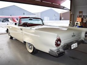 SELLING NO RESERVE! Super Nice Restored 1957 Tbird with AC! Original 312 V8 with 4BBL 245 HP. Power steering, Power Brakes, Power Seat and Air Conditioning! Super nice inside and out with Rust free bones and agreatoriginal Colonial White Color Finish with Original Red Interior. Removable Hardtop in Top shape with porthole windows,Soft top available. New Wide Whites. Clean MN Title in Hand Woody 651 303 7769