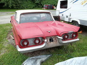 This listing is for a 1959 Ford Thunderbird coupe. It comes with, as I was told, a running 352 automatic, with power steering, and power brakes. There is only a partial interior, with no front bucket seats, and door trim. There is rust in the floor, trunk area, and front as pictured. I was told, the engine runs, and the transmission shifts, and there is brakes to the front wheels.This car was originally all black.I bought this car with the intentions of restoring, but I don`t have the time. I feel this car is too good to part out. If you`re good with a welder, and need a project, this might be the car for you. Ask any question. I will help with loading. Thanks