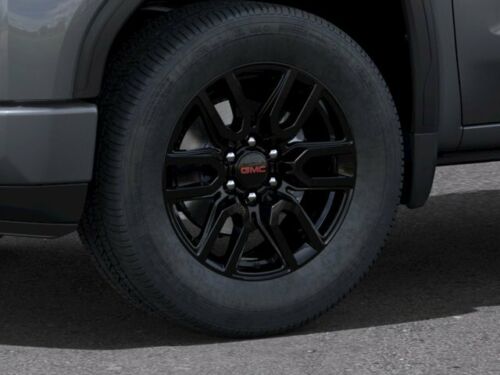Exterior Features Bumper, front, body-color lower (Front bumper color will be high gloss black.)Bumper, rear body-color with corner stepsCornerStep, rear bumperDoor handles, body-colorFog lamps, LEDGlass, deep-tintedGrille (Body-color surround with high gloss Black mesh and inserts.)Lamps, cargo area, cab mounted integrated with center high mount stop lamp, with switch in bank on left side of steering wheelLED Cargo Area Lighting located in cargo bed activated with switch on center switch bank or key fobTailgate and bed rail protection caps, topTailgate, gate function manual with EZ Lift includes power lock and release, includes hitch area lightTailgate, GMC MultiPro Tailgate with six functional load/access featuresTaillamps, LED tail and incandescent stop, turn and reverse lightTire carrier lock keyed cylinder lock that utilizes same key as ignition and doorWheel, 17" x 8" (43.2 cm x 20.3 cm) full-size, steel spareWheelhouse liners, rearWheels, 20" x 9" (50.8 cm x 22.9 cm) Black gloss painted aluminum