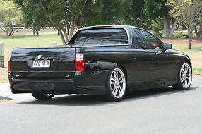 2002 Black Silhouette VU SS Ute with 84 VZ Maloo Front & Tailgate + Hardlid. Coulson Leather Seats. Ute itself has done 82,000km's. Rebuilt 6 Litre LS2 went in 20,000kms ago with Rebuilt 460LE-with (Bigger Clutch Packs) Standard Heads, Comp cams 232/234 camshaft, pacemaker extractors , New twin 3.0" exhaust with hi flow cats, Du-speed Otr and Hi-Torque mafless tune 300rwkw, B &M shifter, lowered with pedders springs and shocks. Min-Spool diff gear ration 3.08. 20" x 8.5 Bonspeed clutch fully polished billet wheels. Tyres have good roadworthy tread . Paint is in good condition but the car does have a few marks here and there. Good clean car overall, selling only because work FIFO and never home to drive ute. 7 Months Rego No rwc. Car is advertised elsewhere so may end auction at any