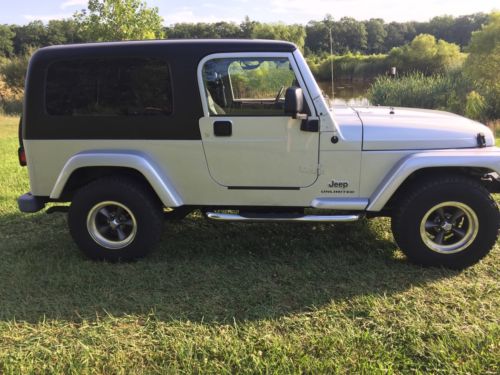 2005 LJ 4.0 6-speed hard top and soft top. this in an unmolested Garage kept LG in beautiful Condition. It has new tires and runs and drives great. The soft is the original and I have never put it on and I don't think the previous owner did either. I upgraded the stereo with a Blue Tooth one, it played and sounds great. There are not many Unlimited out there that are in this condition. The back tail gate is bent from someone bumping into me and there is a report, please see the pictures. Air is ice cold motor runs perfect, no smoke, knocks or noises. also has a larger set of mirrors that are still in the box they came in. Thanks