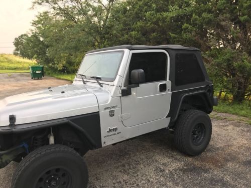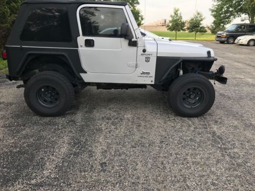 2003 Jeep Wrangler Sport 4.0 L auto. 91k miles. Strong runner. Ice cold a/c. Heat works great. Rusted proofed the inside tub with POR15 than Monstaliner. No carpet. No rotting in the tub. Don't have backseat. Never used it. Plugged the holes for it before rustproofing. Removed original front fenders and installed SmittyBilt 3" tubed fenders w/poison spyder led turn signals. Matching SmittyBilt corner guards and rear 3" fender flairs. SmittyBilt front and rear classic bumpers. Only the rear is installed. Didn't have time me to install the front. Will come with it. Added drain holes on the bottom of the frame. Power washed inside frame and removed most rust scale. Coated the inside frame with Eastwood internal frame coating. The outer frame is coated with plasti-dip. Had plans on POR15 the outside but have no time. Frame conditions is still solid. No rot or broken welds. Never seen off road. Installed 3" Zone lift kit in May of 2016. Installed upper/lower adjustable control arms, front wheel bearings, upper/lower ball joints, adjustable track bar, heavy duty steering linkage with tie rod ends. Installed all myself. Had an off-road shot align the jeep and check over the front end parts I installed. No "death wobble". Tires are only 31" with some life left. Did all the work with intentions of adding 33" tires. Jeep has plenty of clearance to run 33-35" tires. See below at the list that includes everything done. Any questions, please message me. Note: this is my daily driver so the mileage may go up a bit. Approx 11 miles a day. Also has a Prestige alarm with remote start. Clean title, no off road abuse, accident free, smoke free