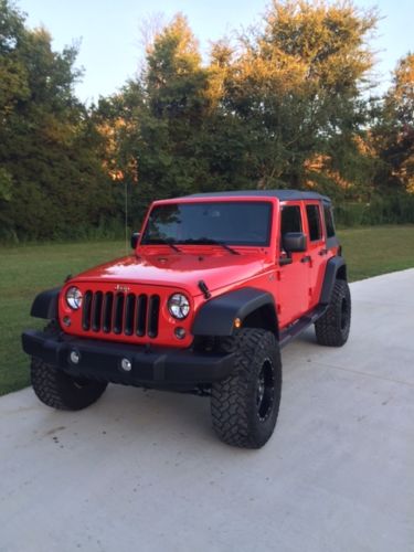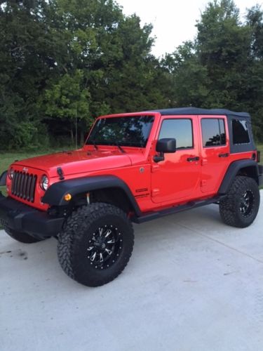 2015 Jeep Wrangler Sport 4-Door for Sale. Jeep has been garage kept and has 8,000 miles. Rusty's 3.25" Lift Kit with Nitto Grappler 35" Tires and Fuel Throttle Rims. Alpine premium sound system with all weather sub-woofer built in. Rugged ridge floor mats, headlight/taillight covers and grill inserts.
