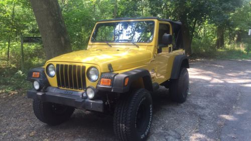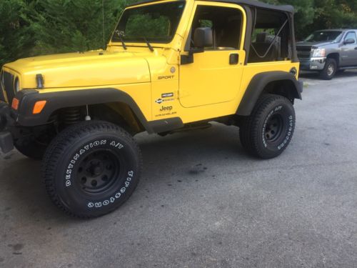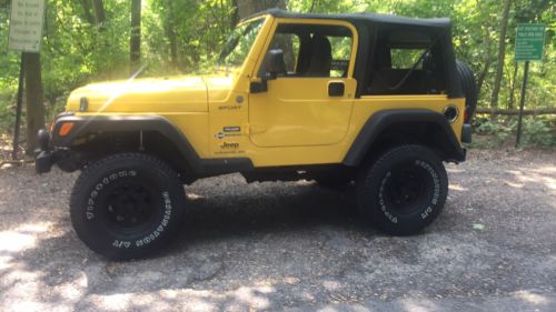 2004 Jeep Wrangler sport 4.0 L five speed great condition runs great shifts great 4 inch lift brand new 33 inch tires very low mileage 83k zero rust on the frame zero rust on the body The grill has a dent in it and the two front fenders have dents in them under the diamond plate covers not really a big deal everything works on the jeep as it should it has a dana 44 rear axle with disc brks a pretty rare option give me a call if you have any questions it has a clear pa title 6104961834 this jeep has a/c works great