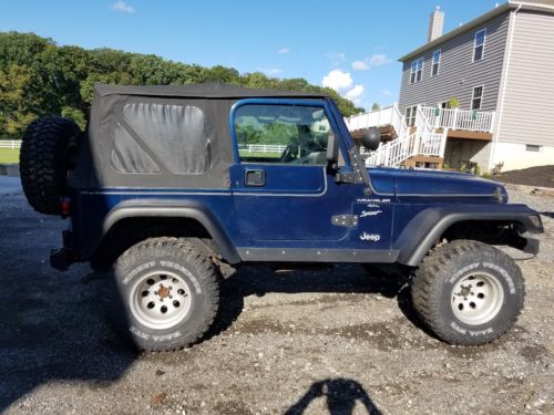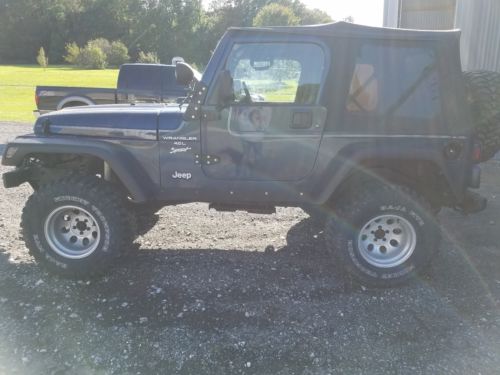 2000 Jeep Wrangler Sport 33x12.50-15 Mickey Thompson wheels and tires, Slip yoke eliminator, Automatic Transmission, 118,716 miles, Spectra cold air intake, electric fan conversion, larger throttle body, header, comp cam. Jeeps runs great, Transmission, and transfer case were rebuilt around 85,000 miles. Jeeps has a hard top that comes with it. Jeep will need rust repair on frame and body mounts as with most TJ's. Jeep runs great. Has a high lift jack and full size spare. Aftermarket rear bumper and upgraded gas tank skid pan. Hate to sell it but need to make room in garage.