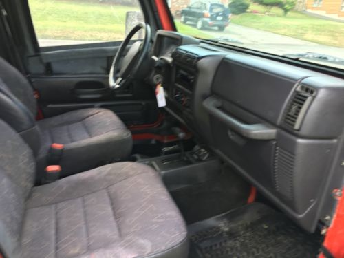 2002 JEEP WRANGLER XRED EXTERIORGREY INTERIORAUTOMATIC TRANSMISSION4.0 6 CYLINDER ENGINEAIR CONDITIONKENWOOD AM/FM CD PLAYER WITH BLUETOOTHNEW TIRESBRAKES131000 MILES..THIS JEEP WAS ONLY DRIVIN 600 MILES A SEASON FOR LAST 4 YEARSIT IS IN EXCELLANT SHAPE..ALL TINTED WINDOWS ARE NICE /..REAR WINDOW IS NOT SHOWN IN PICS I HAVE IT OUT ITS IN GREAT SHAPENO ISSUES AT ALLREAL GOOD FRAMEJEEPS BEEN GARAGEDTHIS IS A NICE TIGHT JEEP NO OFFROADING AT ALL ANY QUESTIONS PLEASE EMAILTRUCK IS ALSO BEING LISTED LOCALLY SO AD MAY DISAPPEAR IF SOLD