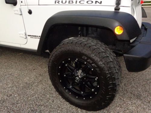 VERY clean 2015 Jeep wrangler Rubicon. With 51,170 miles currently, 2nd owner, clear title on hand. Never off road, female driven. Fully loaded with every option from Jeep with added upgrades such as, Saddle brown leather, Alpine stereo system, Touch screen Navigation. Includes Extended Jeep warranty until 75,000 miles or 2020 ($40.00 transfer fee paid by buyer). Dealer installed 18' Fuel hostage wheels with Open Country tires with less than 6000 miles. Two peace hard top. Two keys, manuals, all weather Jeep floor mats included.