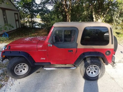 1997 Jeep Tj with hard top. New- tires, wheels, carpet, chrome front and rear bumpers, and side rails, stereo w multi speaker soundbar and interior light, weather-tech mats complete muffler system, brakes, rotors, lines, serpentine belt, starter, tune-up, battery, etc. New items were purchased through Quadratech (so they are top quality). This Jeep starts, runs, drives and stops excellently. Good heat. Has tow package. Passenger side upper window needs a new 1/2 plexiglass window.