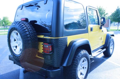 This 2006 Wrangler Rubicon has every available factory option I am aware of. a 4.0 liter inline 6 cylinder engine, 6-Speed manual transmission, air conditioning, tilt steering wheel, cruise control, AM-FM-CD Stereo, Overhead sound bar,, factory installed locking gas cap ythat is coded to the ignition and door key, which there are two of. This Wrangler also has Hella Halogen Fog lamps and Rugged Ridge black diamond plate that is easily removed if you shoose to do so, Factory step bars as well as factory black diamondplate rocker moldings.